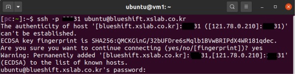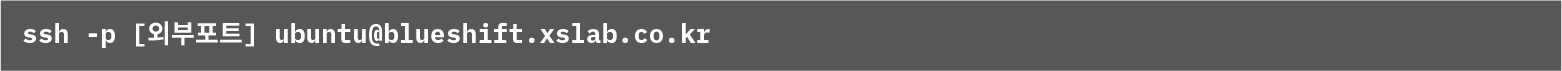 명령어: ssh -p <외부포트> ubuntu@pf.blueshift.xslab.co.kr