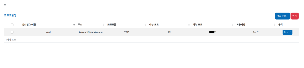 규칙 생성 후 목록에서 자동 할당된 외부 포트와 주소를 확인합니다.